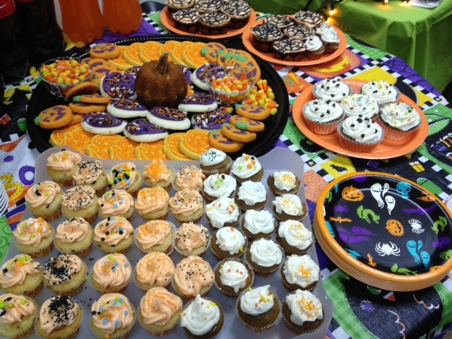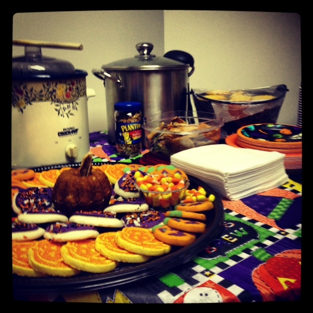 Though it’s too early to be out trick or treating, the MyCorp office is currently dishen’ out our own treats at our Halloween Holiday Party! With a break room adorned with cartoon bat table cloths, skull streamers, and glowing orange lights the MyCorp team is ready for Halloween office-style. Not to mention the tantalizing heap of pot-luck Halloween eats currently piled on the break room tables; spooky Subway sandwiches, monsterous mini hot-dogs, slippery salad, and creepy cake to name a few treats.
